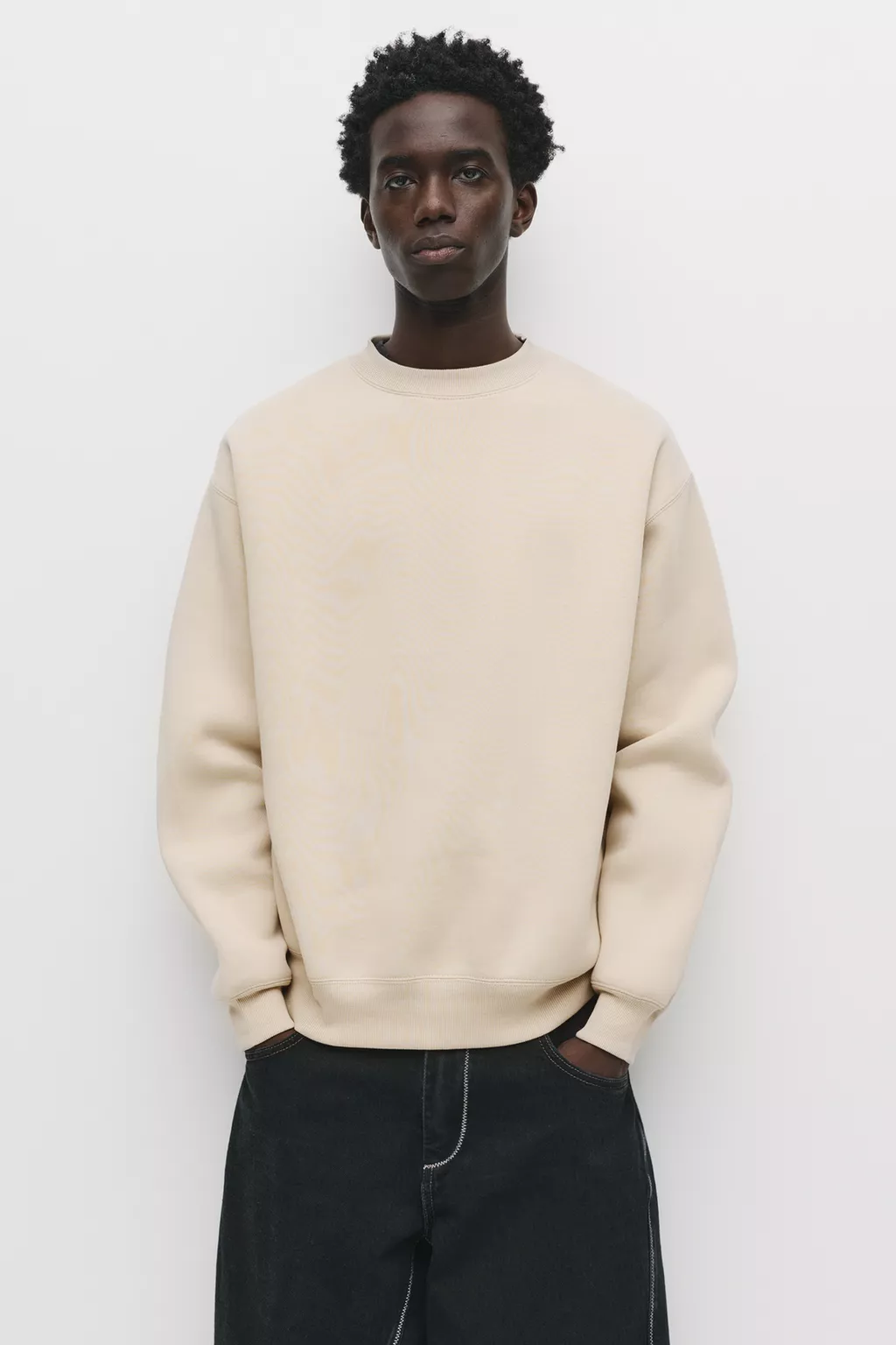 Sudadera básica con cuello redondo disponible en varios tonos y confeccionada en mezcla de algodón.